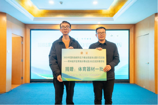 承办单位委托代表向亚太社区捐赠国际跳棋和五子棋棋具20套、助力社区体育服务体系建设。赛事淡化竞技排名,